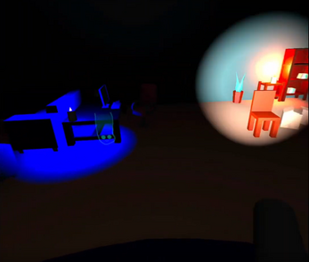 The ghost is invisible to the hunter as long as you stay away from any light sources, if the hunter aims their light at you, you'll slowly become visible! Your goal is to stand next to the candles surrounding the hunter, as you stand next to them, the candle will slowly start to go out until it's dead. Put out three of the four candles and you win!